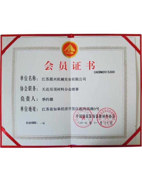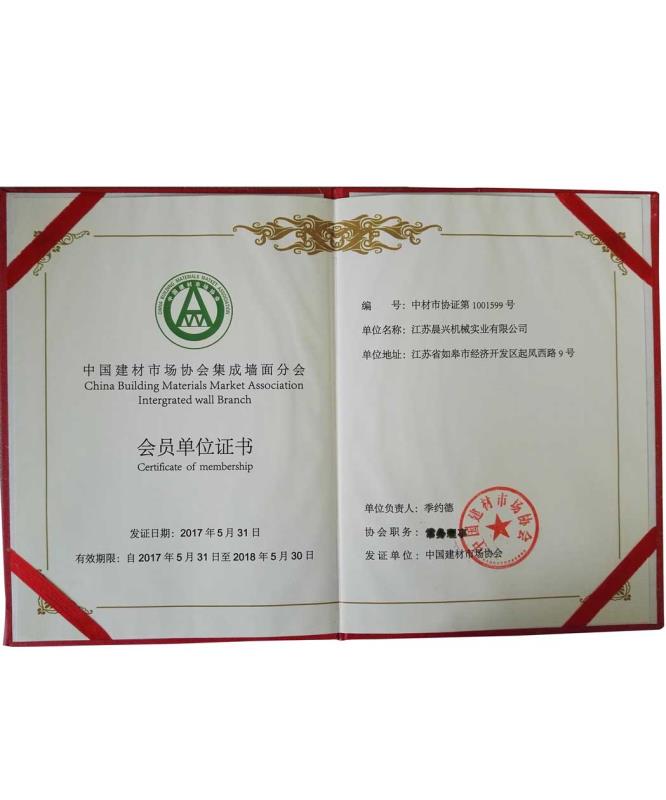 中國(guó)建材市場(chǎng)協(xié)會(huì)集成墻面分會(huì) 會(huì)員單位證書(shū)