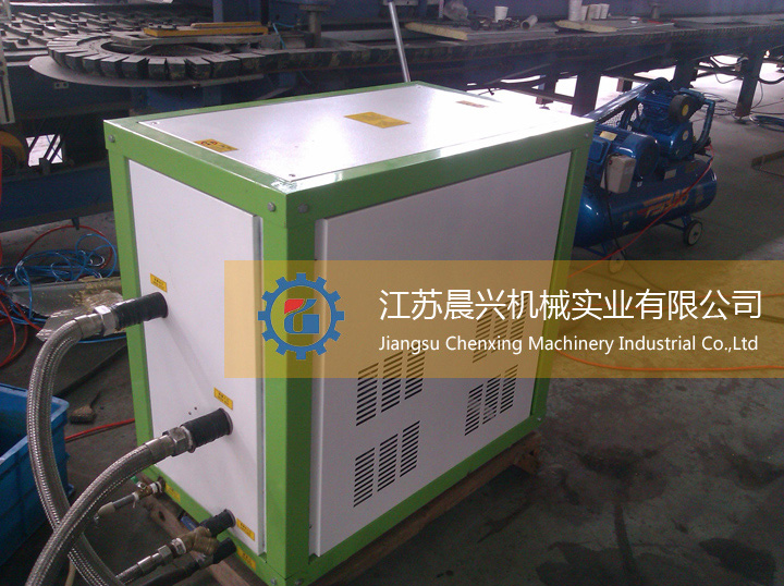 3) 層壓機原來的加熱系統由電加熱和熱風鼓吹,現優化采用了連體盤腸式熱水物質循環加熱,降低電耗,達到了節能效果。